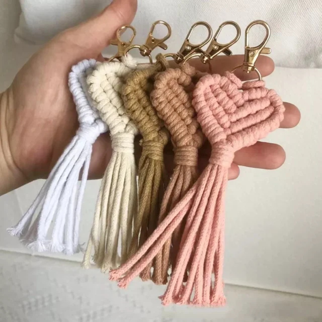 Introducing our latest collection’s gem: the Charming Heart-Shaped Handwoven Keychain. A symbol of love and creativity, this exquisite accessory is more than just a keychain; it’s a statement of fashion and affection. Designed with meticulous attention to detail, each pendant is a unique expression of sweet sentiments, making it an ideal gift for weddings, anniversaries, or simply as a special treat for yourself.