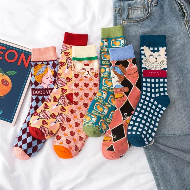 Our socks aren’t just any ordinary pair; they are a testament to quirky, fun fashion that also serves the purpose of keeping you warm through the chill of winter, spring, and autumn. The unique blend of cotton, polyester, and spandex ensures breathability, sweat absorption, and a comfortable stretch that fits most sizes. Whether you’re lounging at home, stepping out for a casual meet-up, or gifting them to someone special, these socks are designed to be a versatile, delightful choice.