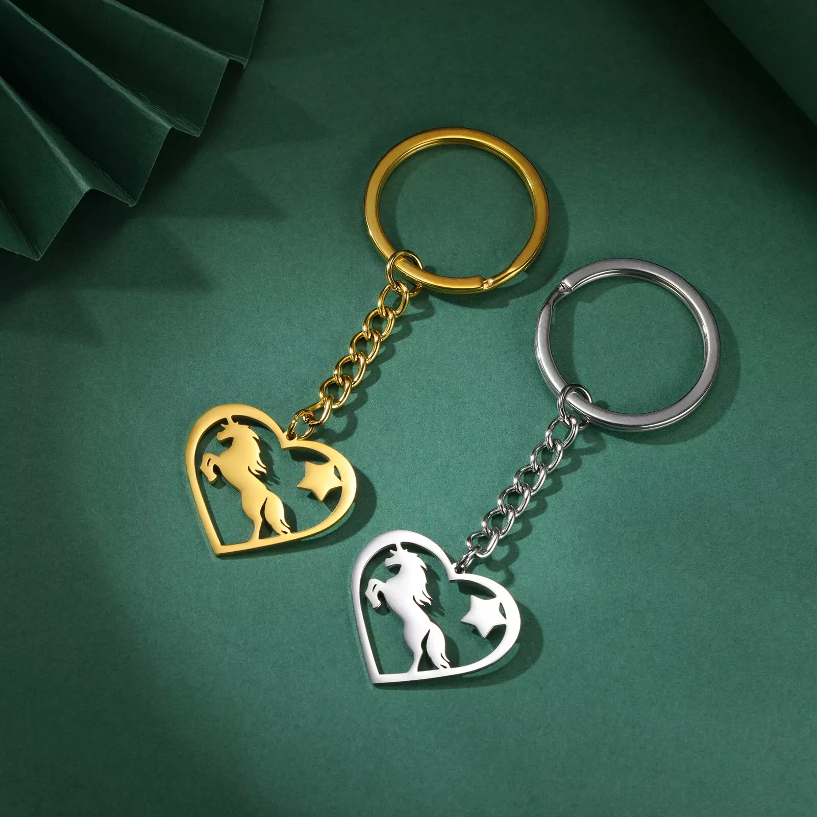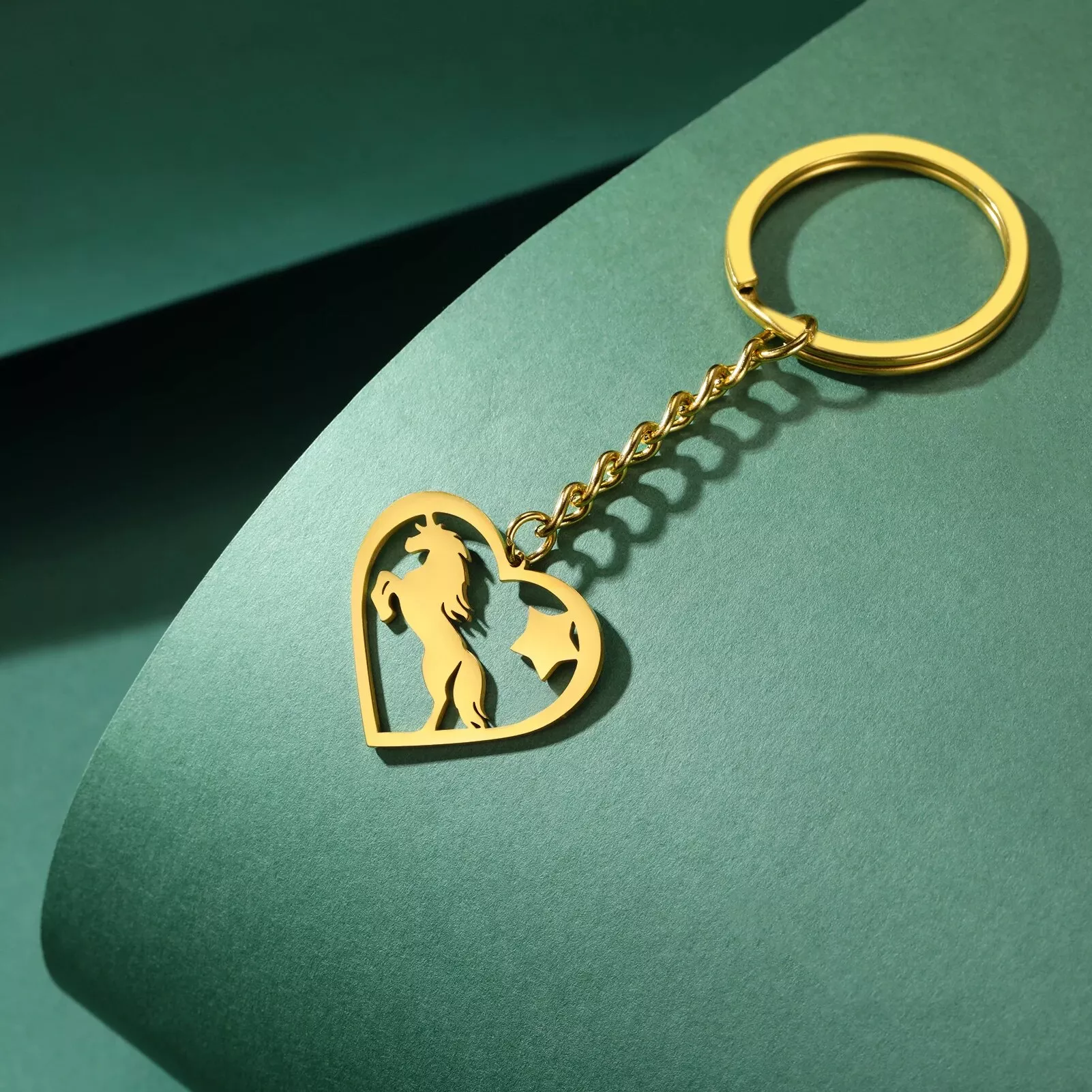 Elegant Gold Color Stainless Steel Keychain with Heart & Star Pendant