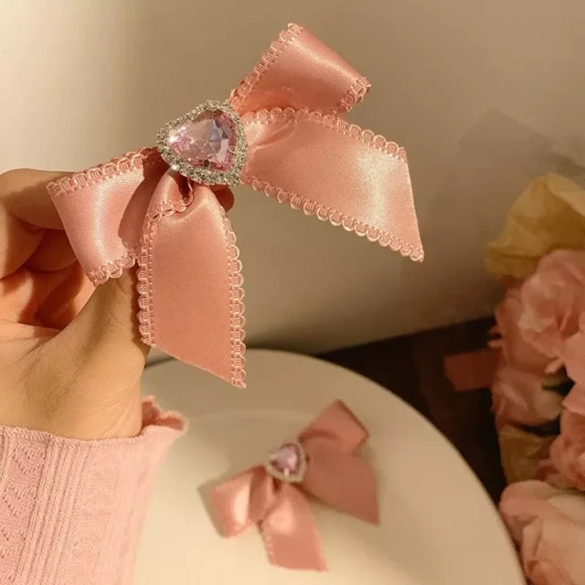 Chic Design: The elegant pink bow with a zircon heart encapsulates style, making it a versatile piece for any outfit.