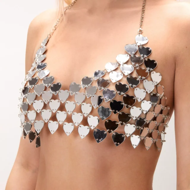 Introducing a mesmerizing blend of elegance and allure – the Heart Sequin Backless Halter Tank Top. Crafted for the woman who loves to stand out, this crop top is your ticket to making a statement at any rave, party, or club. With its eye-catching heart sequin decorations, sexy backless design, and v-neck halter silhouette, you’re guaranteed to be the center of attention.