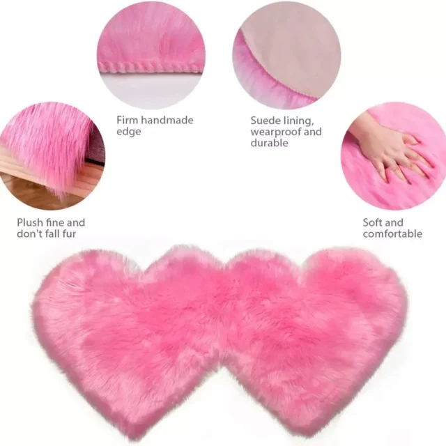 Introducing our Heart-Shaped Fluffy Area Rug, the perfect addition to infuse your living space with warmth, comfort, and a touch of romantic flair. Designed with a charming double heart shape, this rug symbolizes love and luck, making it an ideal decoration for living rooms, bedrooms, kids’ rooms, and even study areas. Its unique design blends harmoniously with most flooring and furniture styles, adding a cozy and inviting touch to any room.