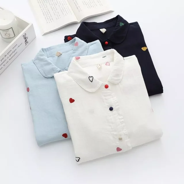 Love Heart Print Women’s Long Sleeve Cotton Blouse