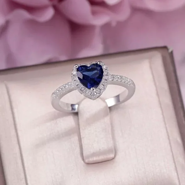 • Main Stone: Premium quality blue heart-shaped cubic zirconia