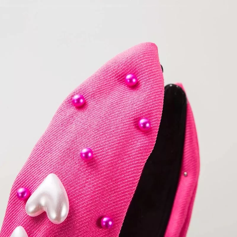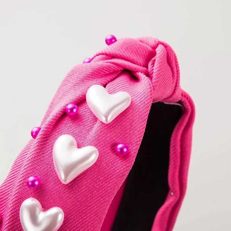 • Chic and Trendy Design: Featuring a knotted design inlaid with love-shaped pearls, this headband exudes a romantic and trendy vibe.