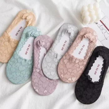 Summer Lace Heart Boat Socks: Non-Slip, Breathable & Stylish