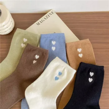 Chic Harajuku Heart Print Crew Socks