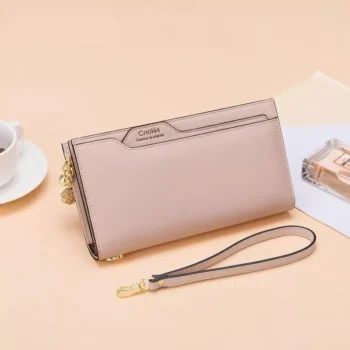 Soft Leather Long Envelope Wallet with Fashion Bandage