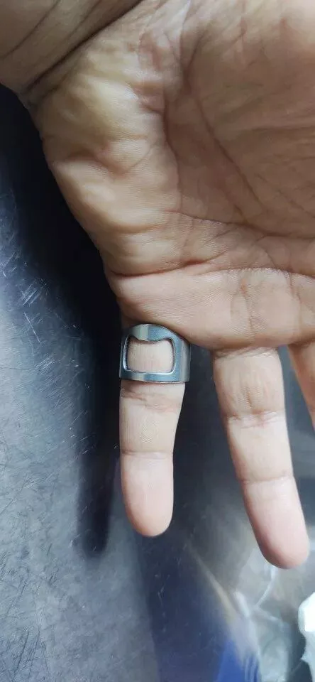 A true innovation in the world of beverage accessories. It fits perfectly and works flawlessly every time. The material is premium, giving it a luxurious feel. It's a practical yet fashionable item that has become indispensable in my social gatherings. Worn daily, this ring holds symbolic significance as a replacement for past engagements, despite being slightly uncomfortable and prone to pinching during bottle opening; it's well-made and recommended for its cool appearance and practicality.