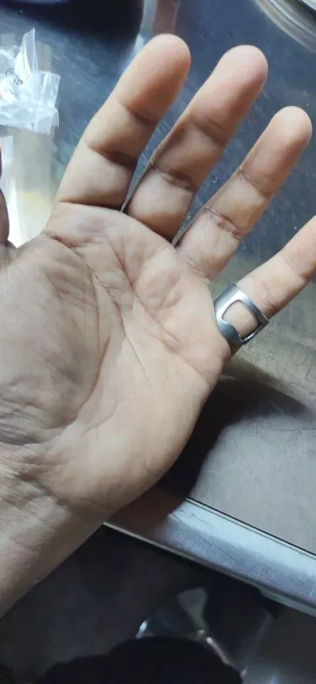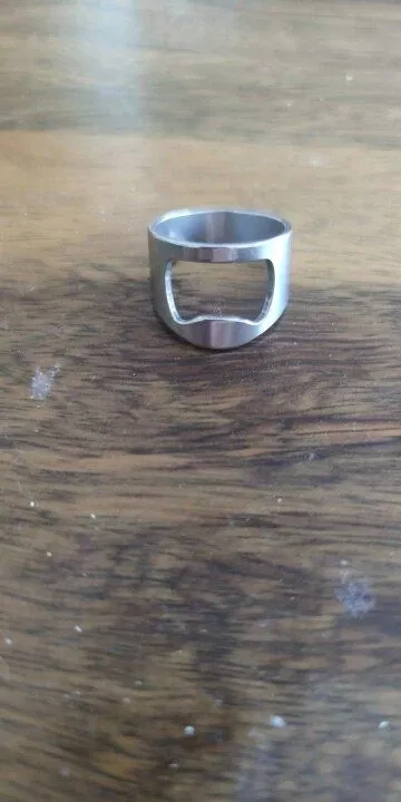 Recommended by my daughter for its practicality as a bottle opener, this ring surpassed expectations, suggesting ordering a larger size for a better fit.