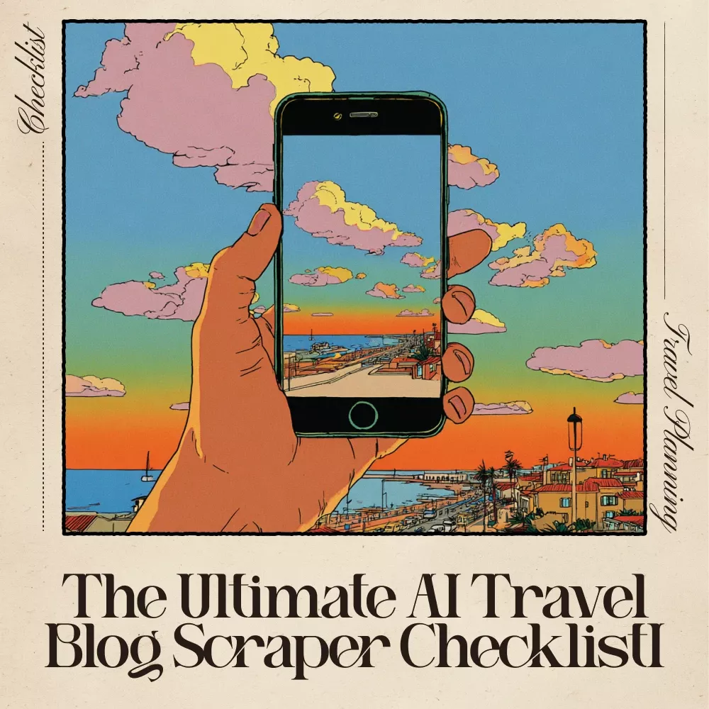 The Ultimate AI Travel Blog Scraper Checklist | Digital Download for Content Creators, Bloggers & Travelers | ai that scrapes travel blogs for best ideas | Travel Idea Mining Guide