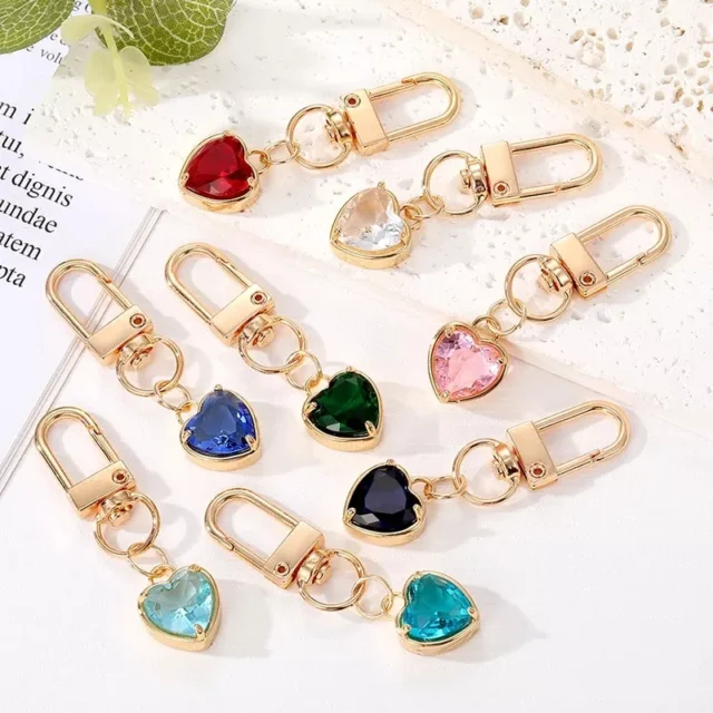 • Exquisite Craftsmanship: Each keychain features a dazzling heart made from high-quality glass, adorned with vibrant zircon crystals set in a sturdy metal frame. The blend of materials ensures durability and long-lasting shine.